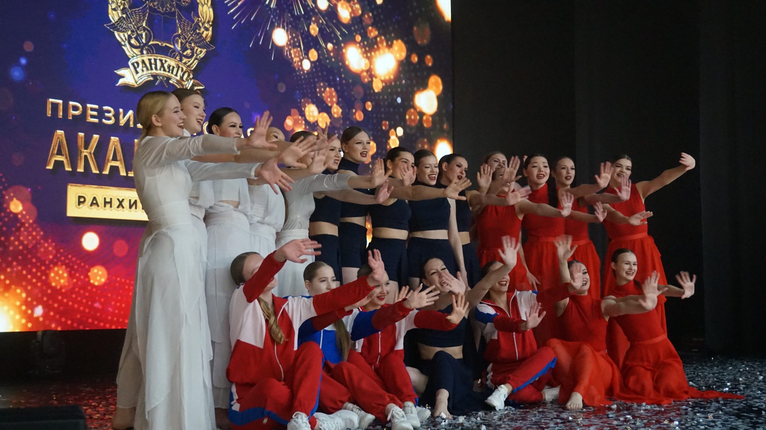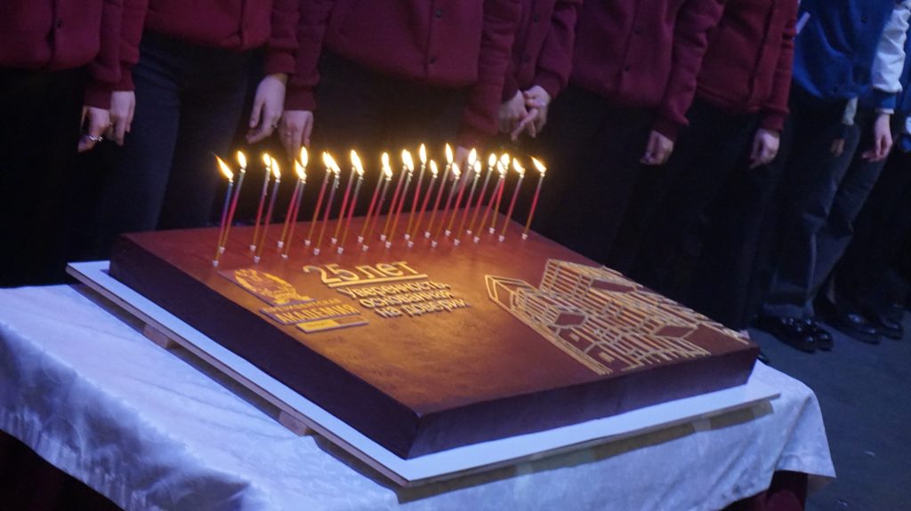 Гостей ждала насыщенная, яркая программа: на сцене РАНХиГС выступили творческие коллективы города, прошла церемония награждения, а в финале мероприятия вынесли большой торт, изготовленный торговой сетью «МарияРа» специально для Академии и угостили тортом всех присутствующих.