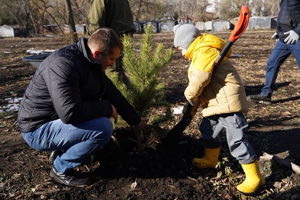 Высадка аллеи в парке имени Ленина была посвящена празднованию Дню отца. Представители общественного движения «Отцы России» и их дети высадили около 30 сосен.